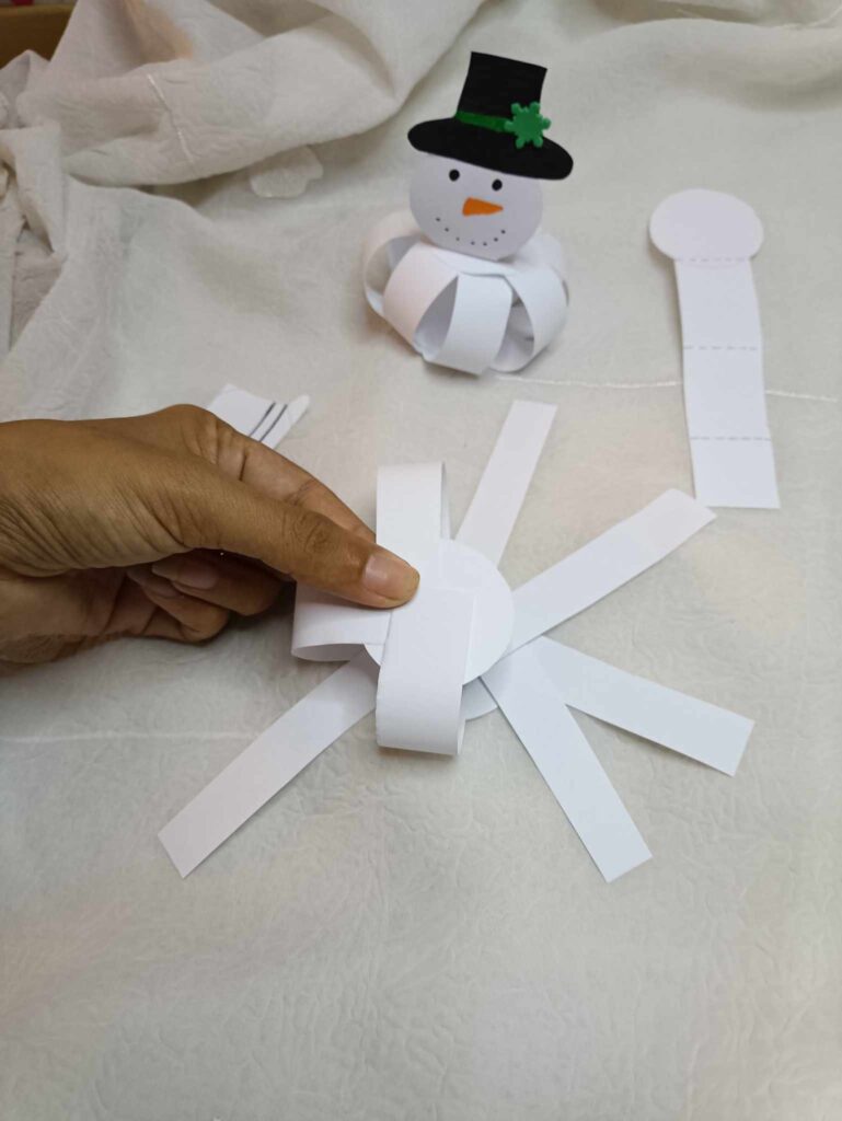 Coller les bandes ensembles pour créer le corps en 3D du bonhomme de neige.